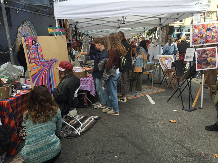 In 2024 The Artwalk was able to expand onto Ashbury Street where we can fit more artists and create our own Art Walk zone at the Haight-Ashbury Street Fair.