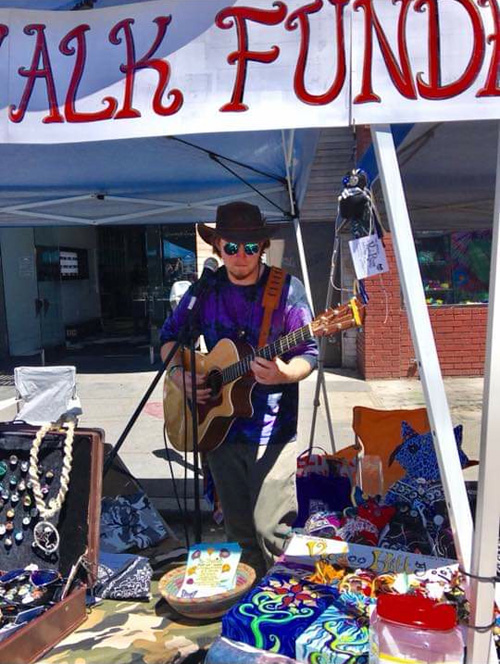 Cole Jamming on Acoustic guitar with his wire wraps as well as glass art by Luis - 2017