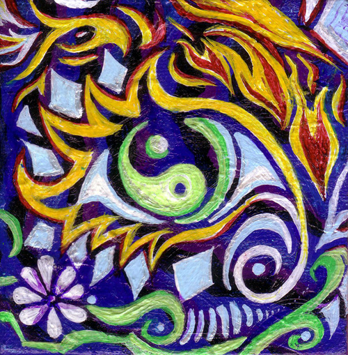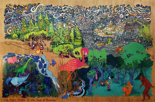 Mushroom Garden (includes UV and glow-in-the dark paint) 2019 Acrylics on Clayboard "Just More Magic in the Bay of Dreams" 2016-2017 Acrylics on wood
